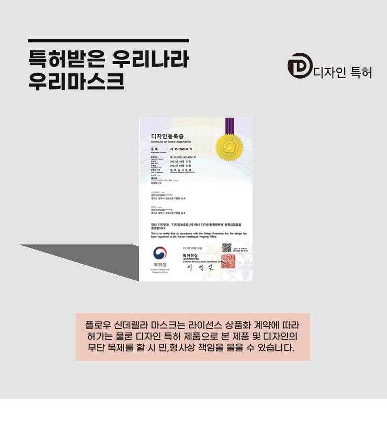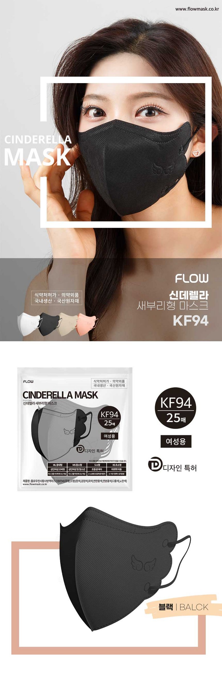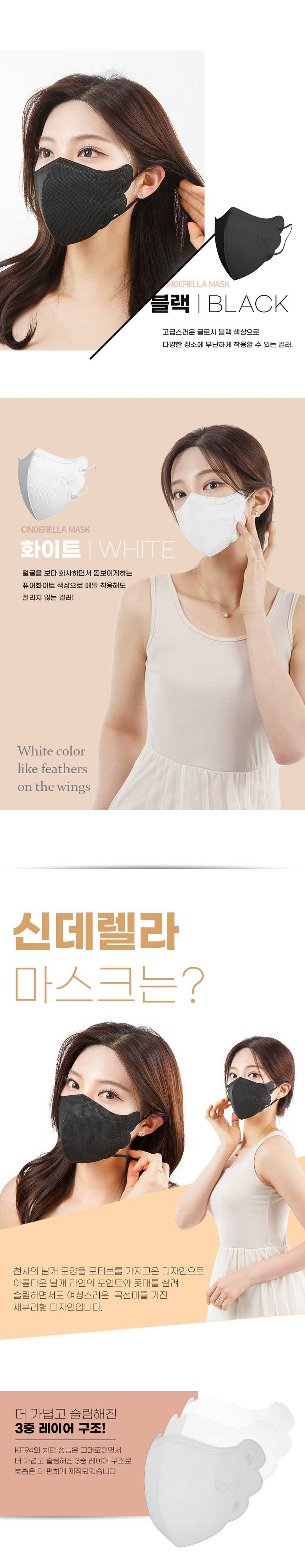 | 품명 및 모델명 | 신데렐라 중대형 | 인증/허가 사항 | 의약외품, KF94마스크 |
