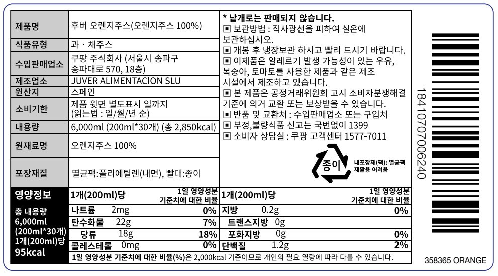 - 주스 종류: 오렌지