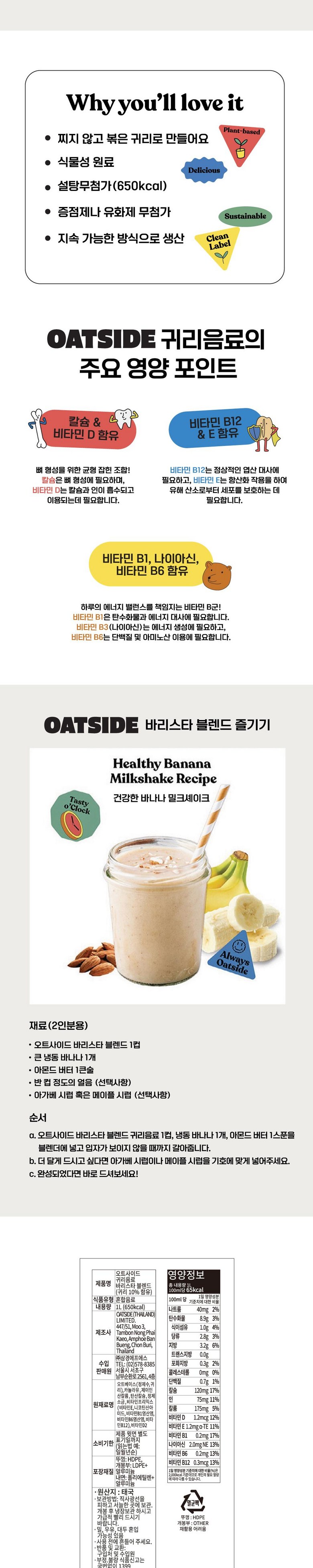 - 맛/향: 귀리바리스타