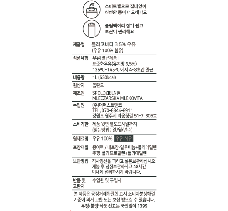 | 제조연월일, 소비기한 또는 품질유지기한 | 상품 상세페이지 참조 | 세부 품목군별 표시사항 | 상품 상세페이지 참조 |
