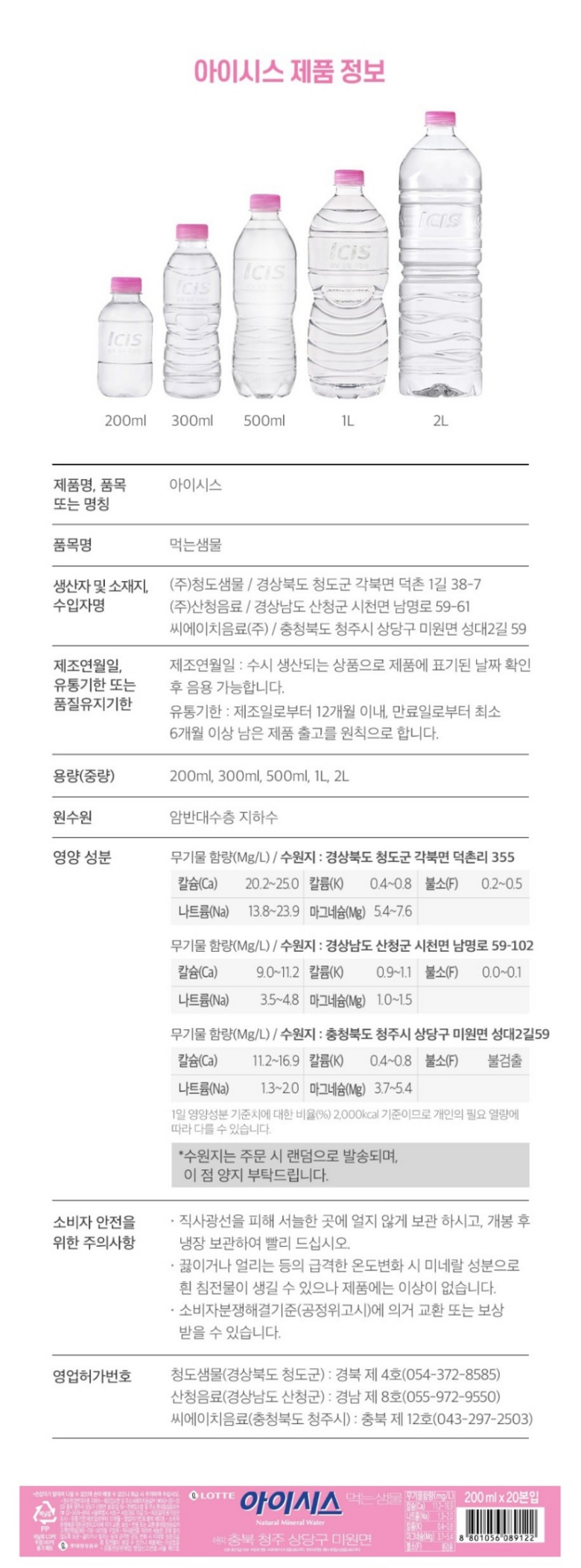 - 음료수 종류: 생수