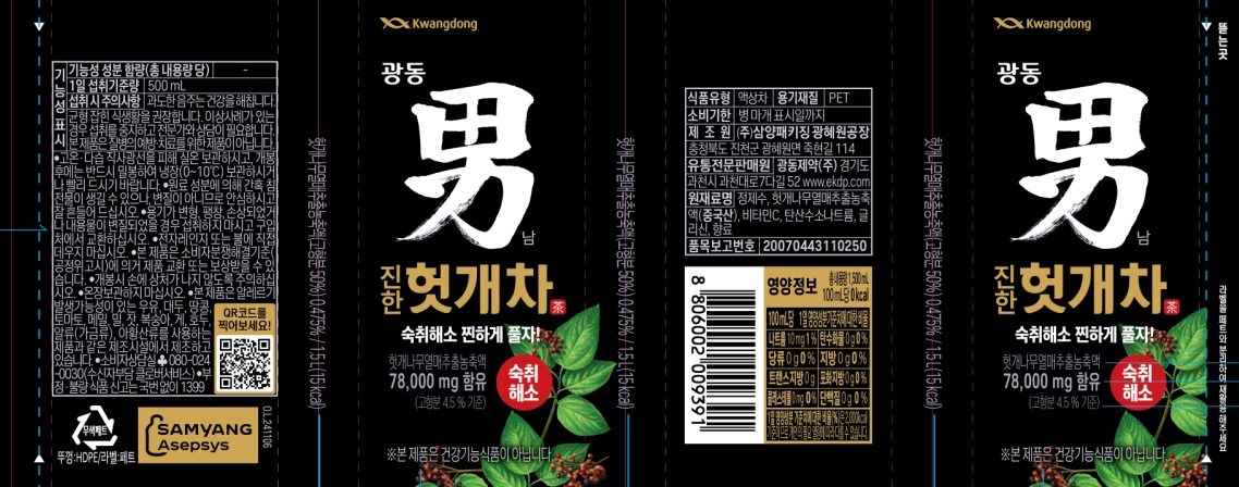 | 포장단위별 내용물의 용량(중량), 수량 | 1.5L x 60개 | 원재료명 및 함량 | 컨텐츠 참조 |