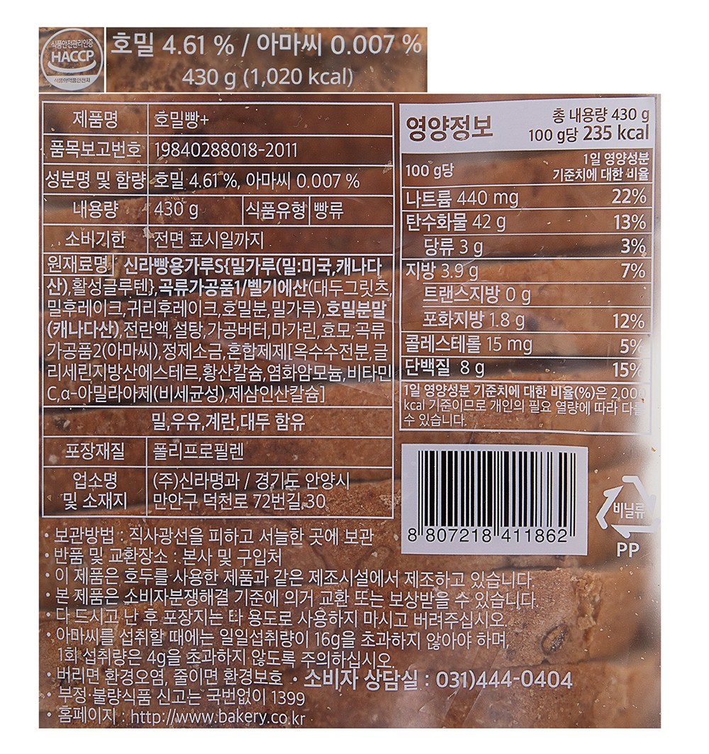 | 포장단위별 내용물의 용량(중량), 수량 | 430g x 4개 | 원재료명 및 함량 | 컨텐츠 참조 |