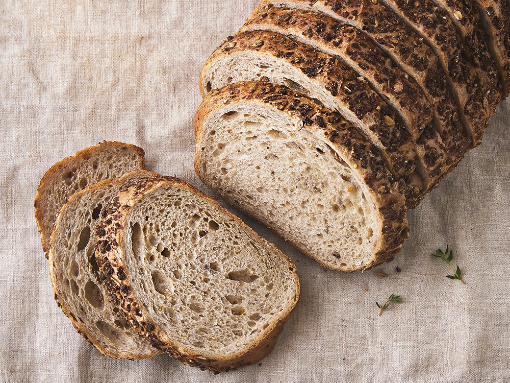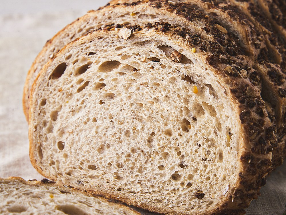 적당한 두께로 슬라이스 된 호밀빵이에요. 쫄깃해 보이는 빵 속에 부드럽고 촉촉한 식감이 숨어있답니다. 씹으면 씹을수록 고소하고 담백한 풍미가 입안 가득 퍼지죠. 달지 않고 담백한 간식이 당길 때 꺼내어 드셔보세요.