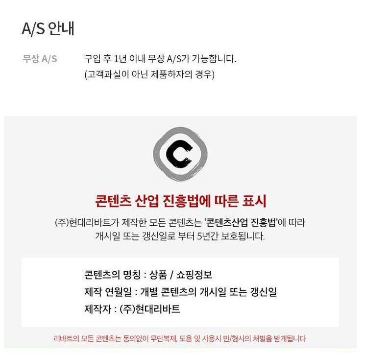 - ㆍ교환/반품에 관한 일반적인 사항은 판매자가 제시사항보다 관계법령이 우선합니다.