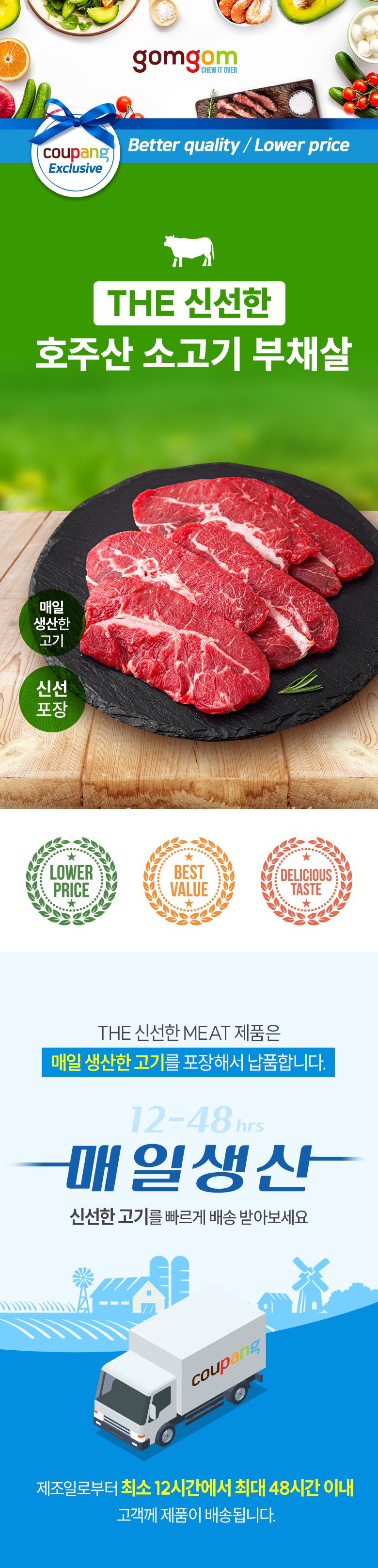 | 품목 또는 명칭 | THE 신선한 호주산 소고기 부채살 | 포장단위별 내용물의 용량(중량),수량,크기 | 300g x 3개 |