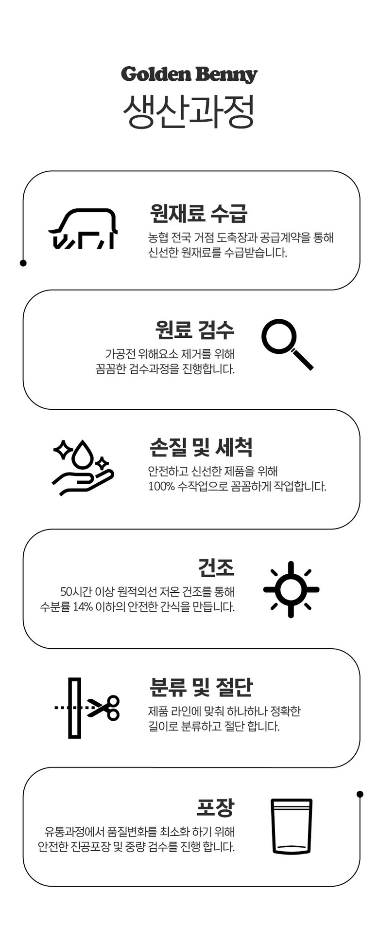 신선한 원재료 사용과 꼼꼼한 손질을 통해 만든 간식은 악취가 날 수가 없습니다.