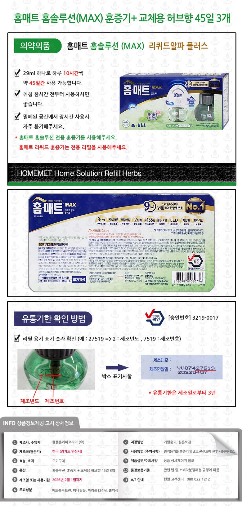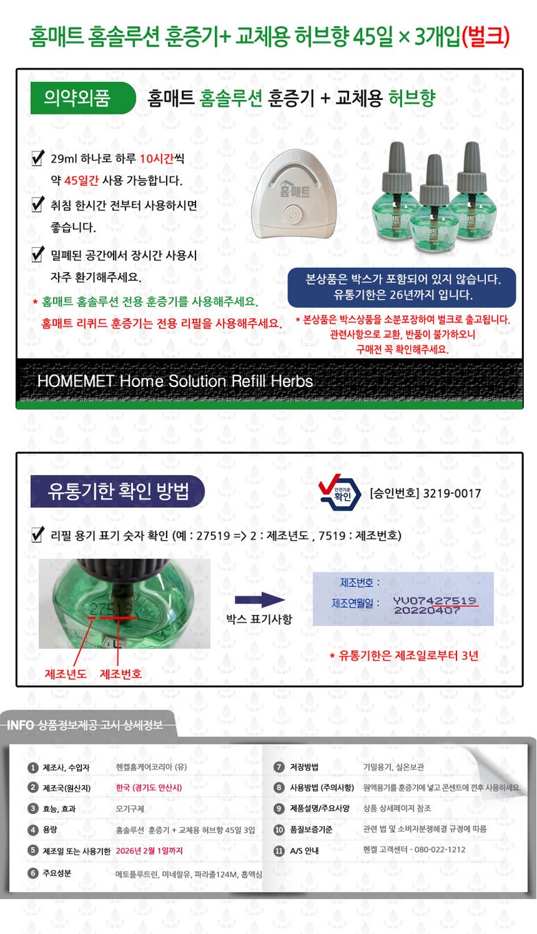홈매트 리퀴드 홈솔루션 허브 리필 3p + 훈증기