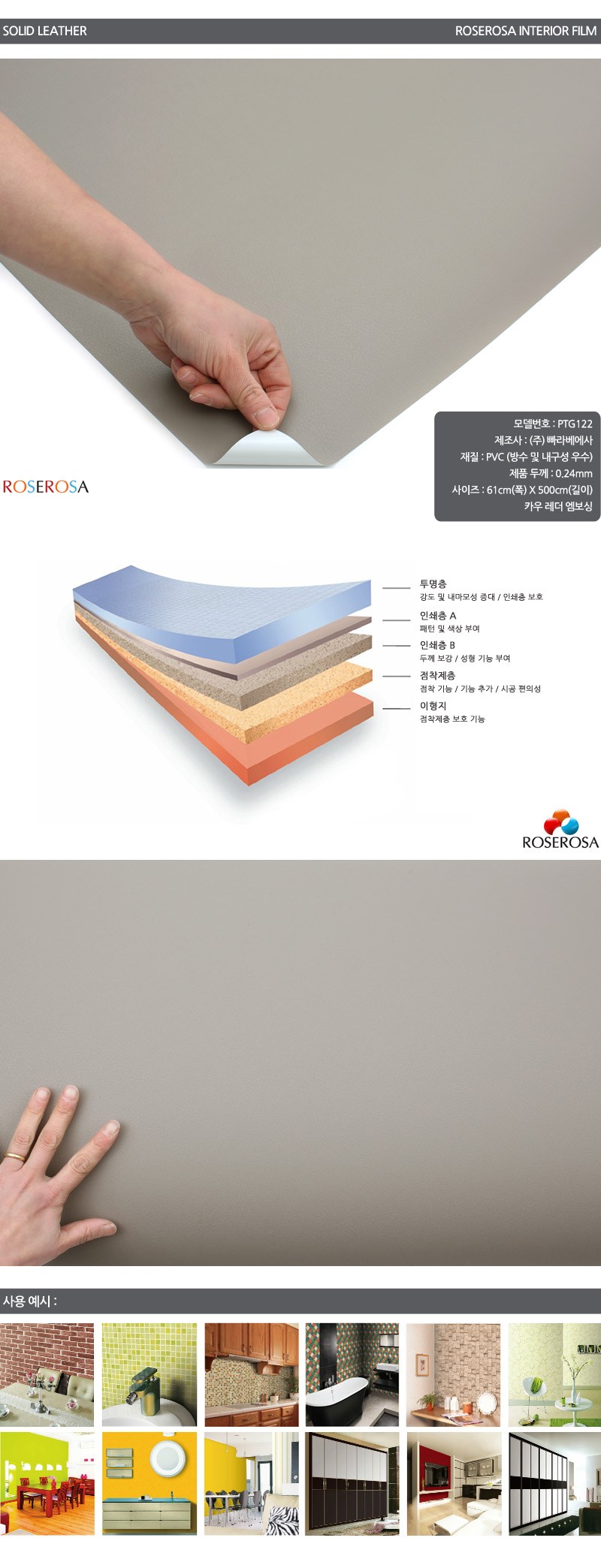 | 품명 및 모델명 | 로즈로사 인테리어 솔리드 카우 레더 단색 인조가죽 시트지 PTG122 | 인증/허가 사항 | 해당없음 |
