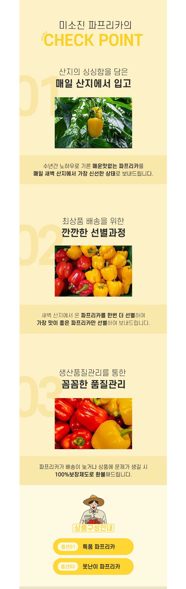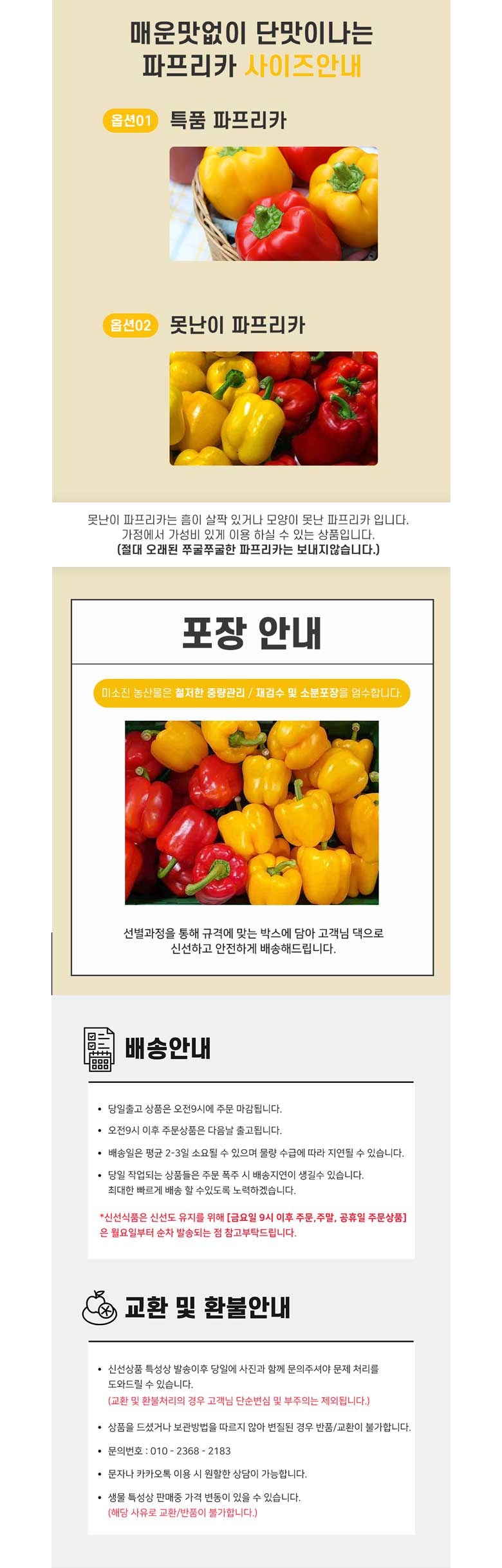 | 품목 또는 명칭 | 파프리카 | 포장단위별 내용물의 용량(중량),수량,크기 | 파프리카1kg,3kg,5kg |