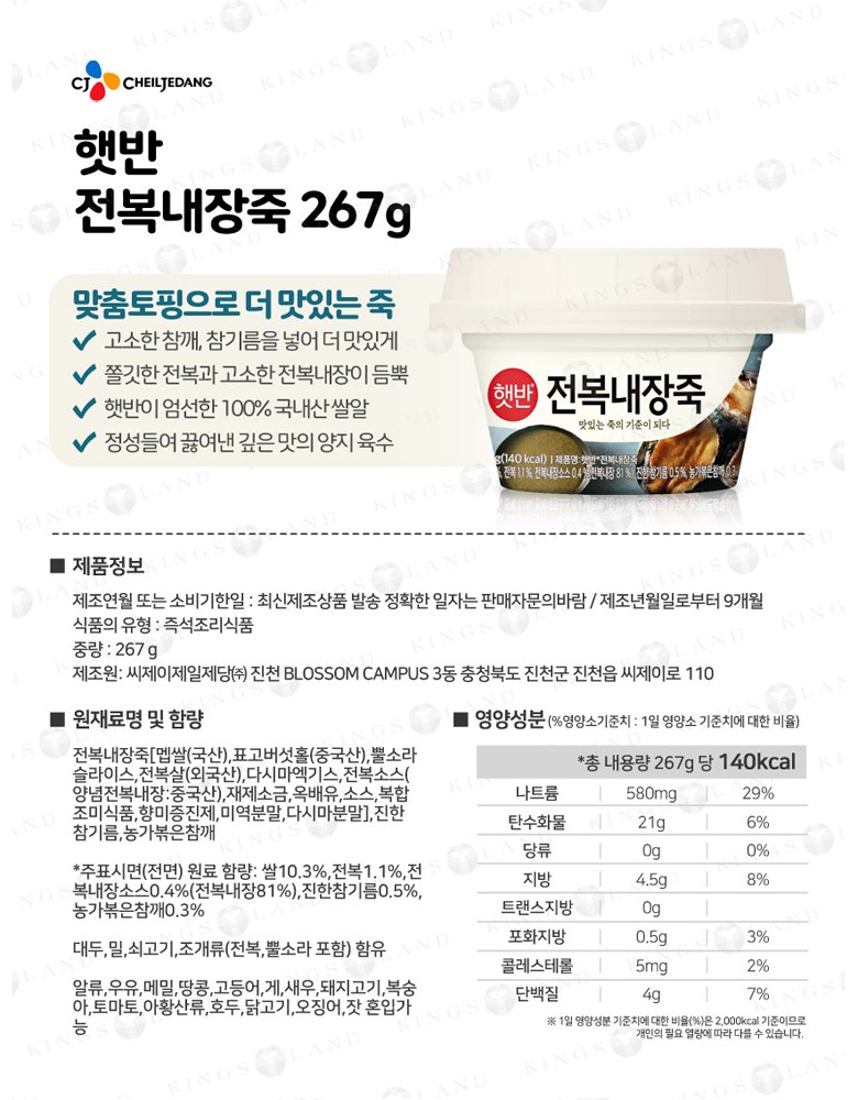 | 제품명 | 상품 상세페이지 참조 | 식품의 유형 | 상품 상세페이지 참조 |