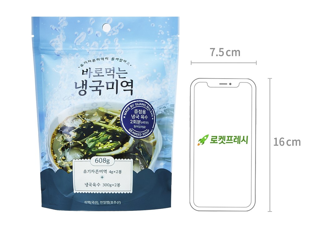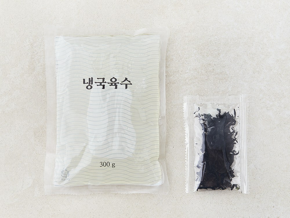 냉국 육수, 유기 자른 미역이 각 2팩씩 구성되어 있습니다.