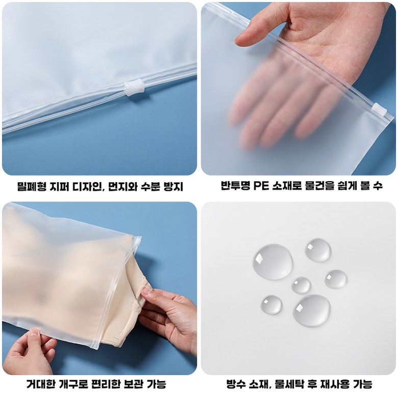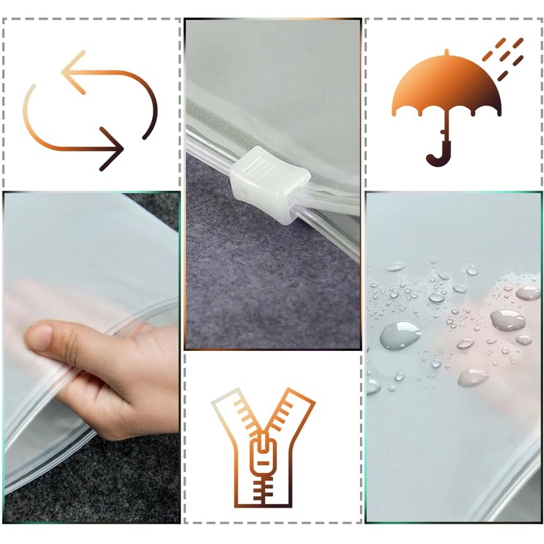 - 효과적인 보호: 지퍼로 닫힌 방식으로 옷과 물건을 습기와 물로부터 보호합니다.