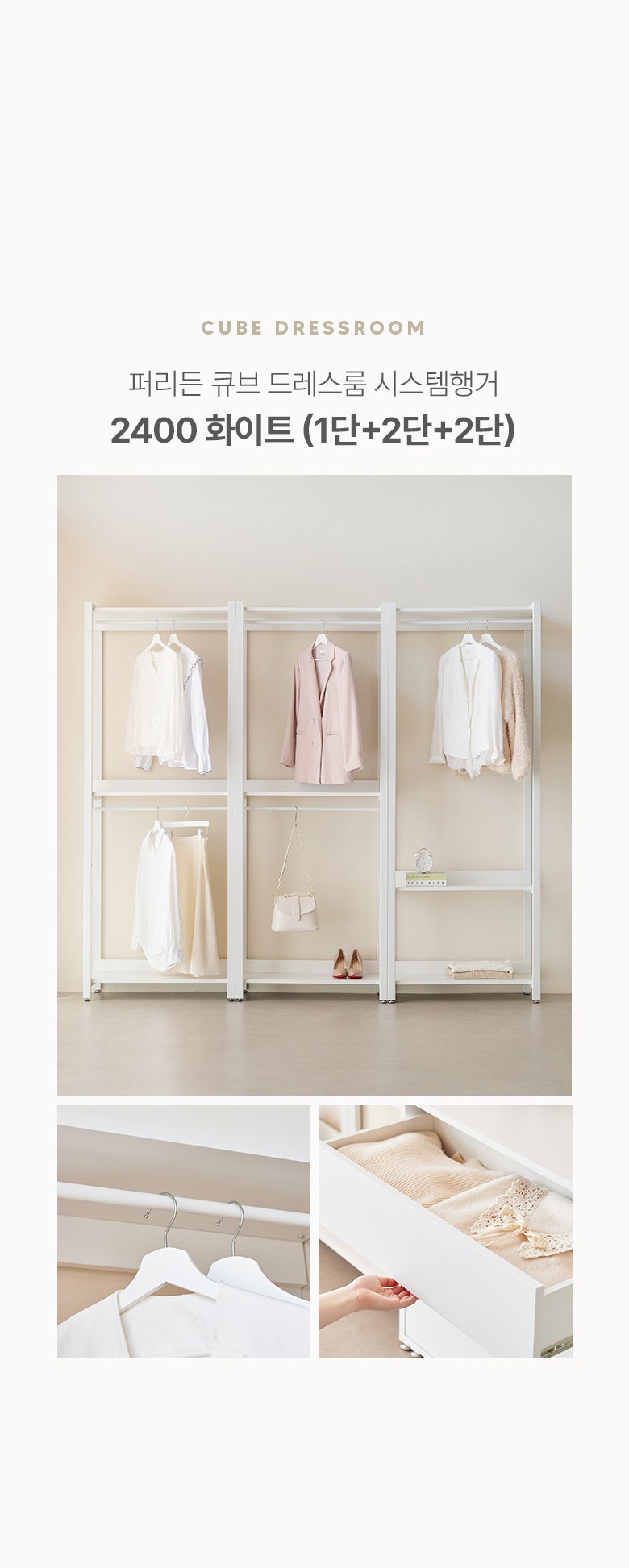 | 품명 | 퍼리든 큐브 드레스룸 시스템 행거 2400 화이트 (2단+2단+1단) 방문설치 | KC 인증정보 | 해당없음 |