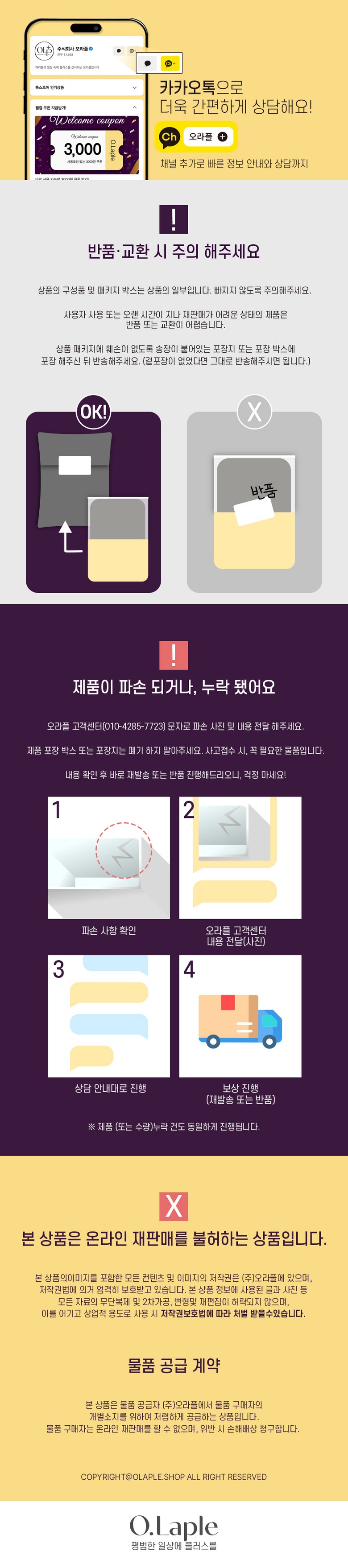 - ㆍ모니터 해상도의 차이로 인해 색상이나 이미지가 실제와 달라, 고객이 단순 변심으로 교환/반품을 무료로 요청하는 경우