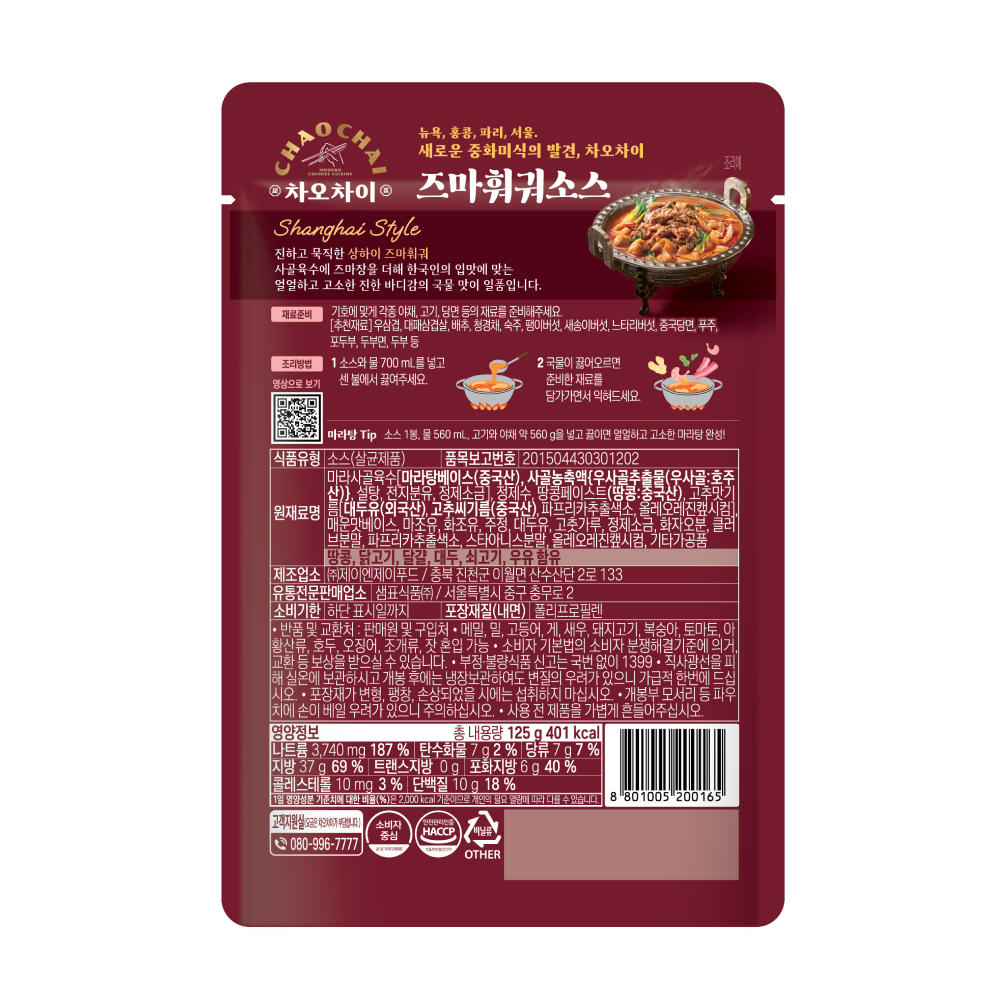 | 제품명 | 즈마훠궈소스 | 식품의 유형 | 컨텐츠 참조 |