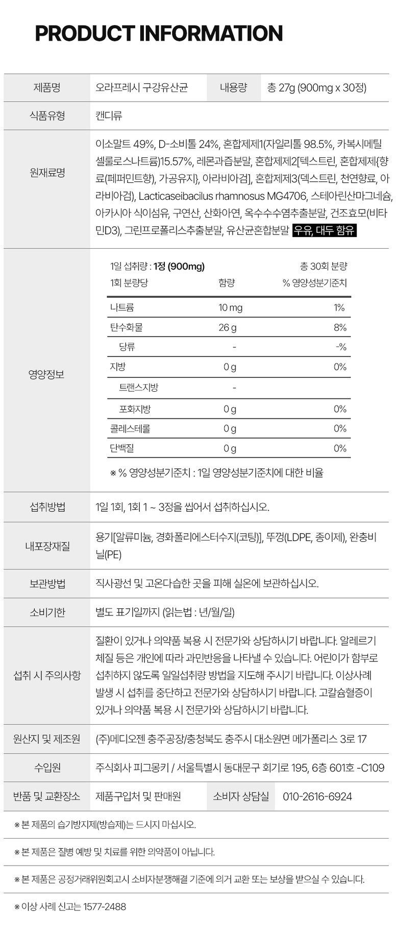 | 제품명 | 상품 상세페이지 참조 | 식품의 유형 | 상품 상세페이지 참조 |
