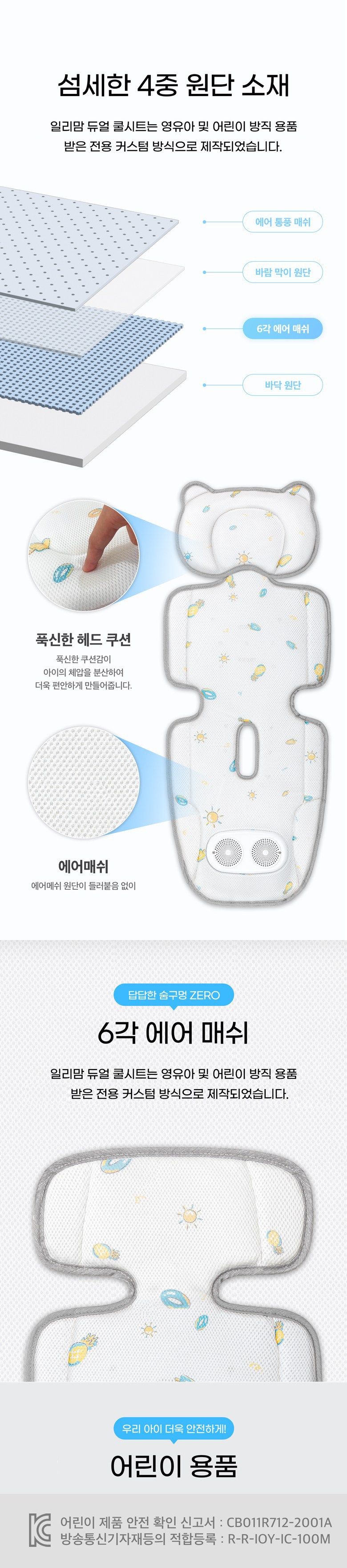 | 품명 및 모델명 | 일리맘 듀얼 쿨시트 / IC-100M | KC 인증정보 | CB011R712-2001A , R-R-IOY-IC-100M |