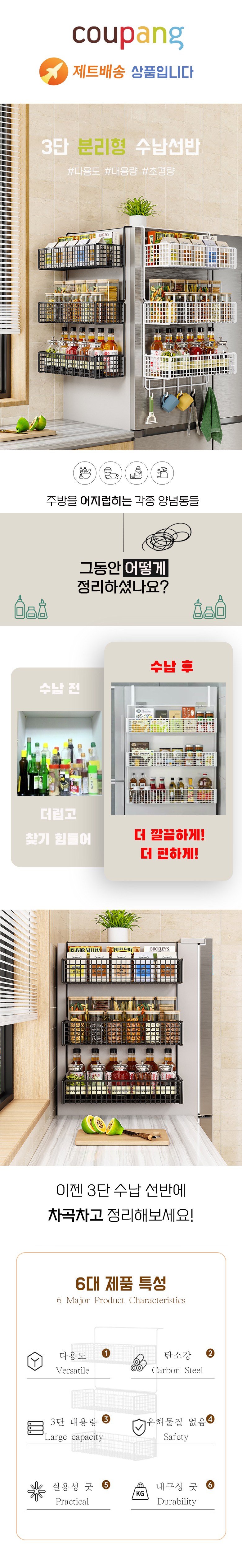 | 품명 및 모델명 | 다용도 3단 수납선반 후크걸이 틈새수납 현관문 냉장고 세탁기 옷장 걸치대 | 인증/허가 사항 | 해당없음 |