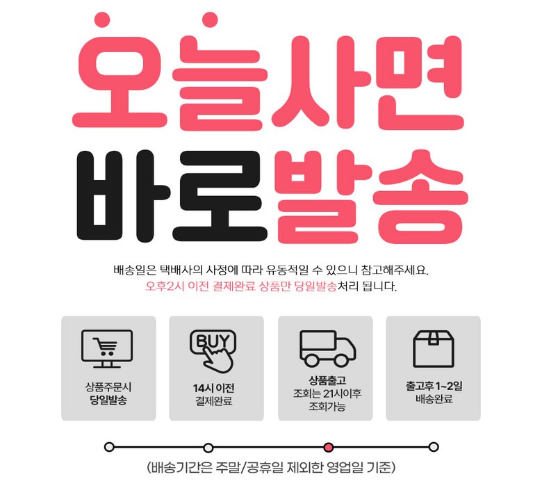 | 배송기간 | ㆍ도서산간 지역 등은 배송에 3-5일이 더 소요될 수 있습니다. - 천재지변, 물량 수급 변동 등 예외적인 사유 발생 시, 다소 지연될 수 있는 점 양해 부탁드립니다. | ||