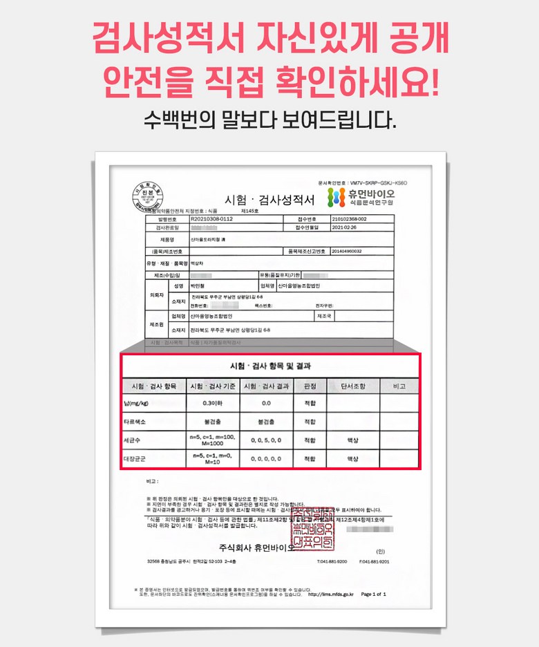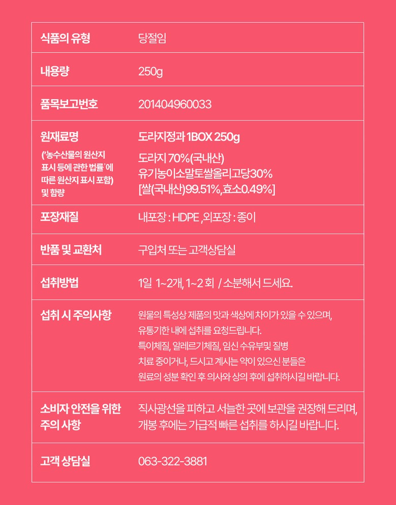 | 제조연월일, 소비기한 또는 품질유지기한 | 상품 상세페이지 참조 | 세부 품목군별 표시사항 | 상품 상세페이지 참조 |