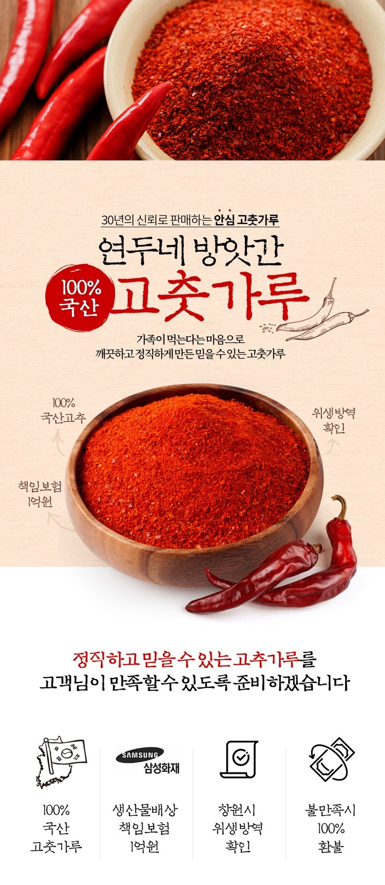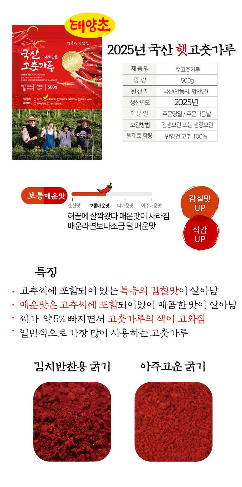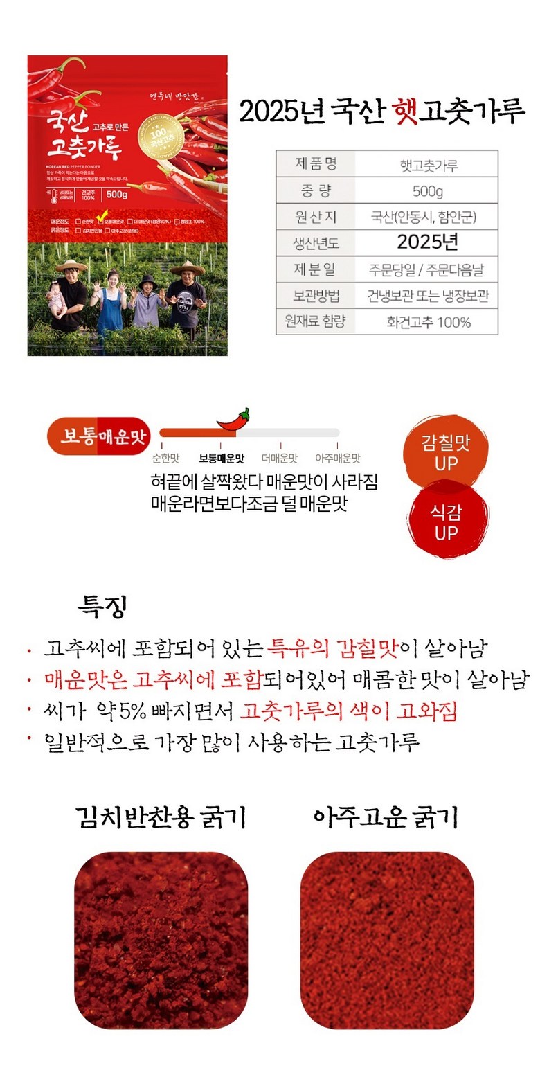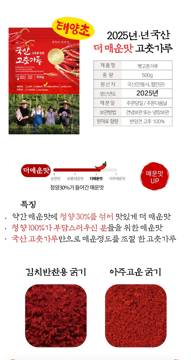 | 품목 또는 명칭 | 고춧가루 | 포장단위별 내용물의 용량(중량),수량,크기 | 500g |