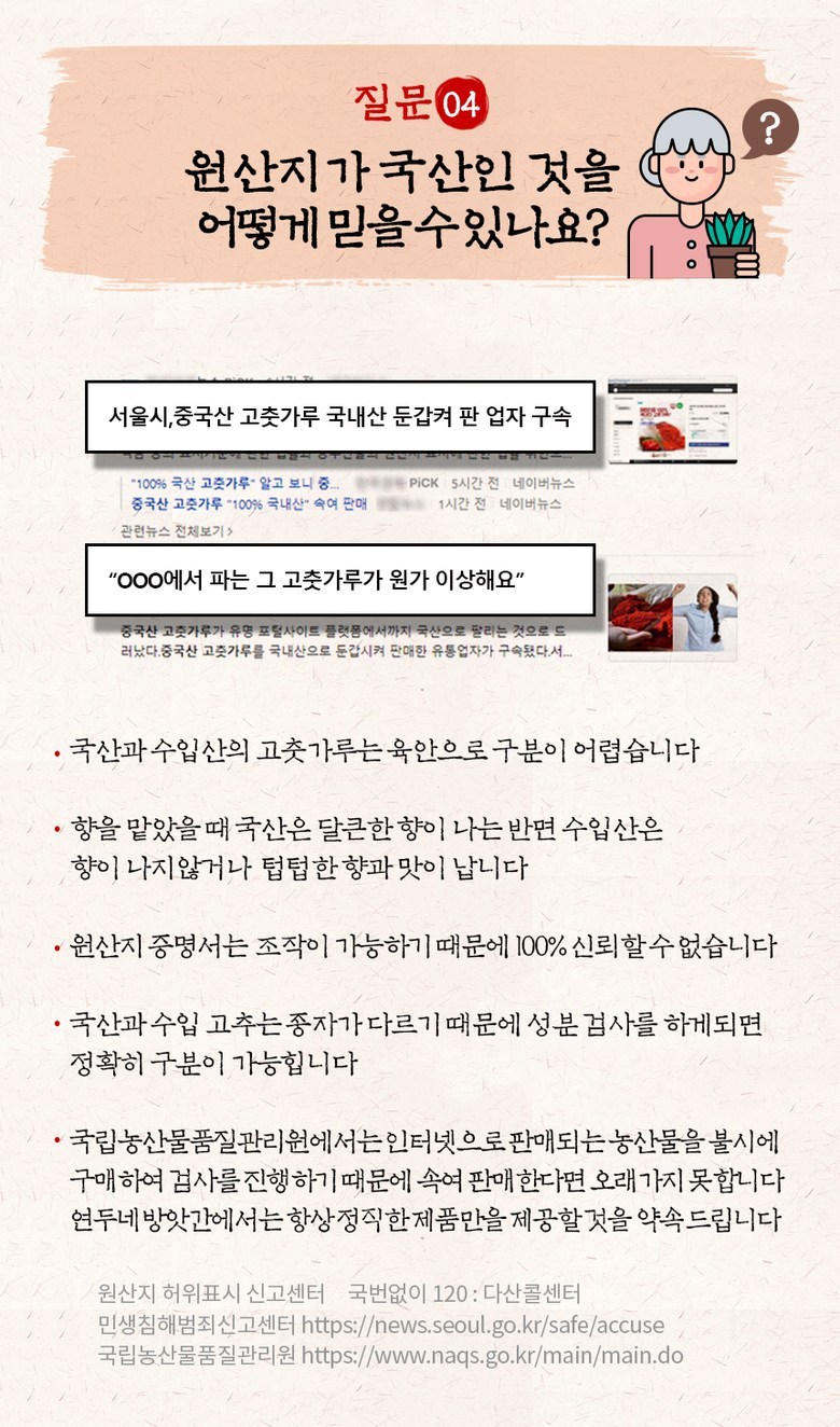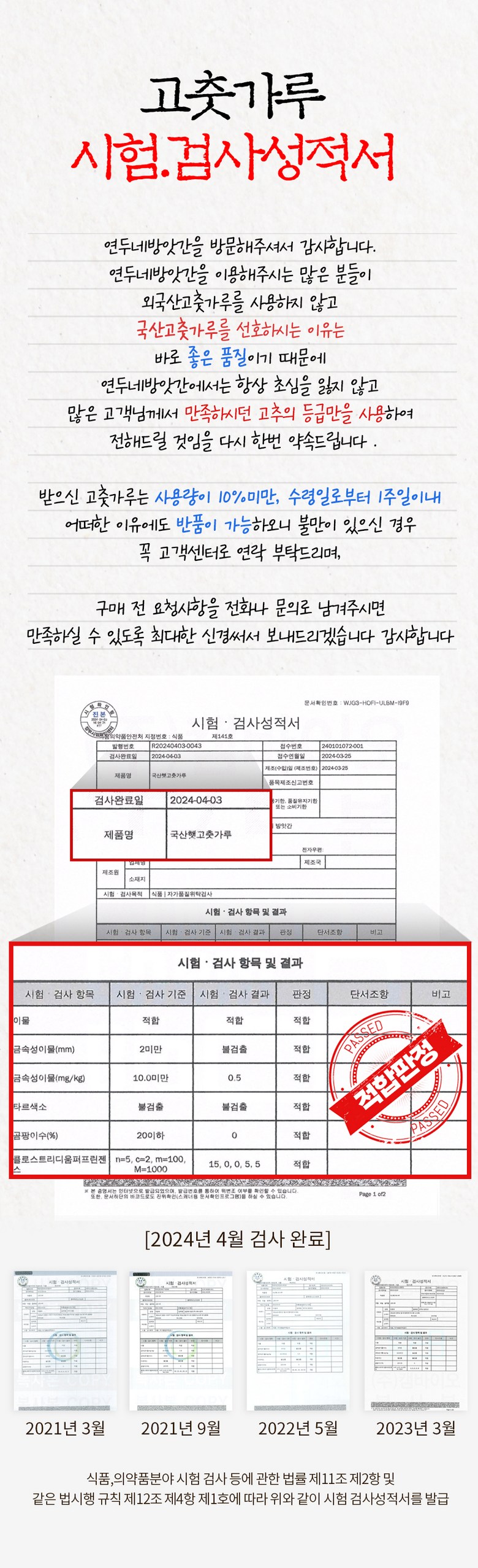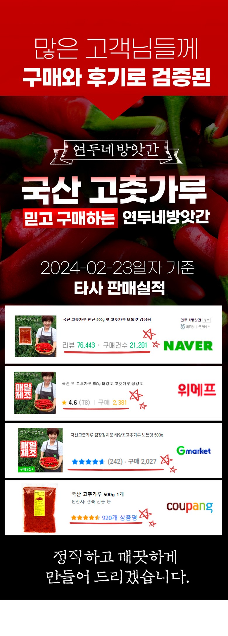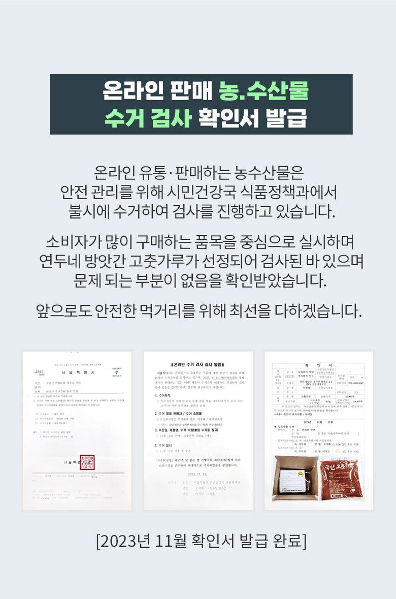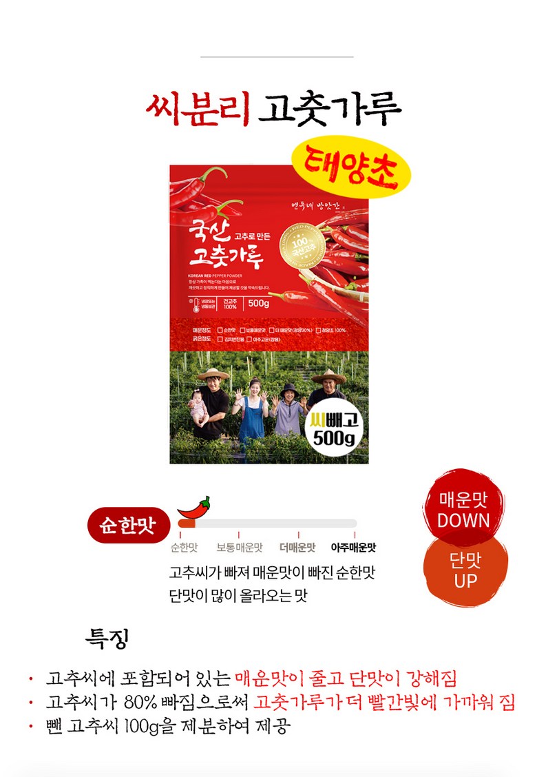 | 품목 또는 명칭 | 고춧가루 | 포장단위별 내용물의 용량(중량),수량,크기 | 500g |
