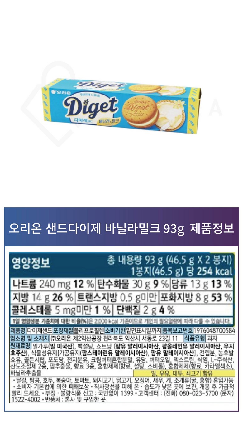 - 과자 종류: 과자/쿠키/비스킷