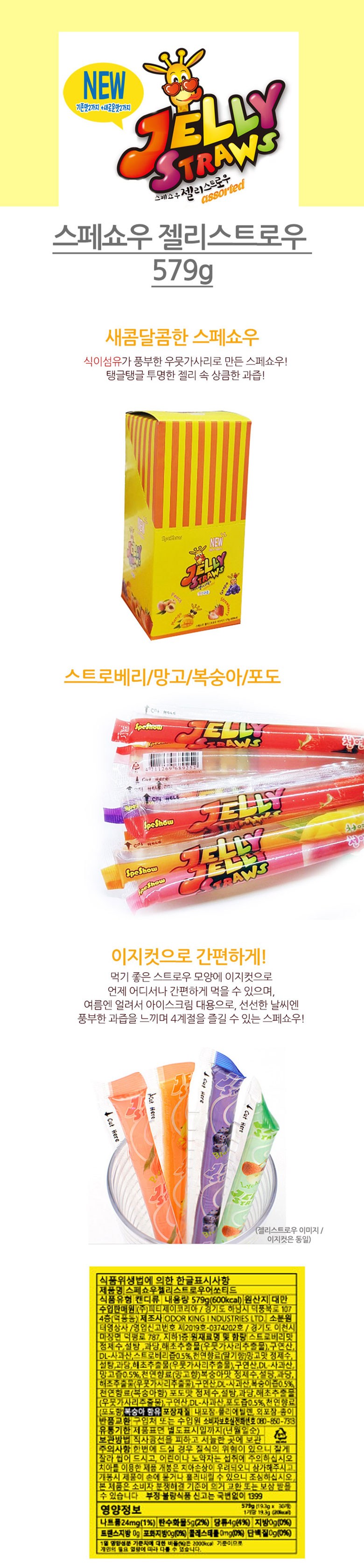 | 제품명 | 스페쇼우젤리스트로우어쏘티드 | 식품의 유형 | 캔디류 |