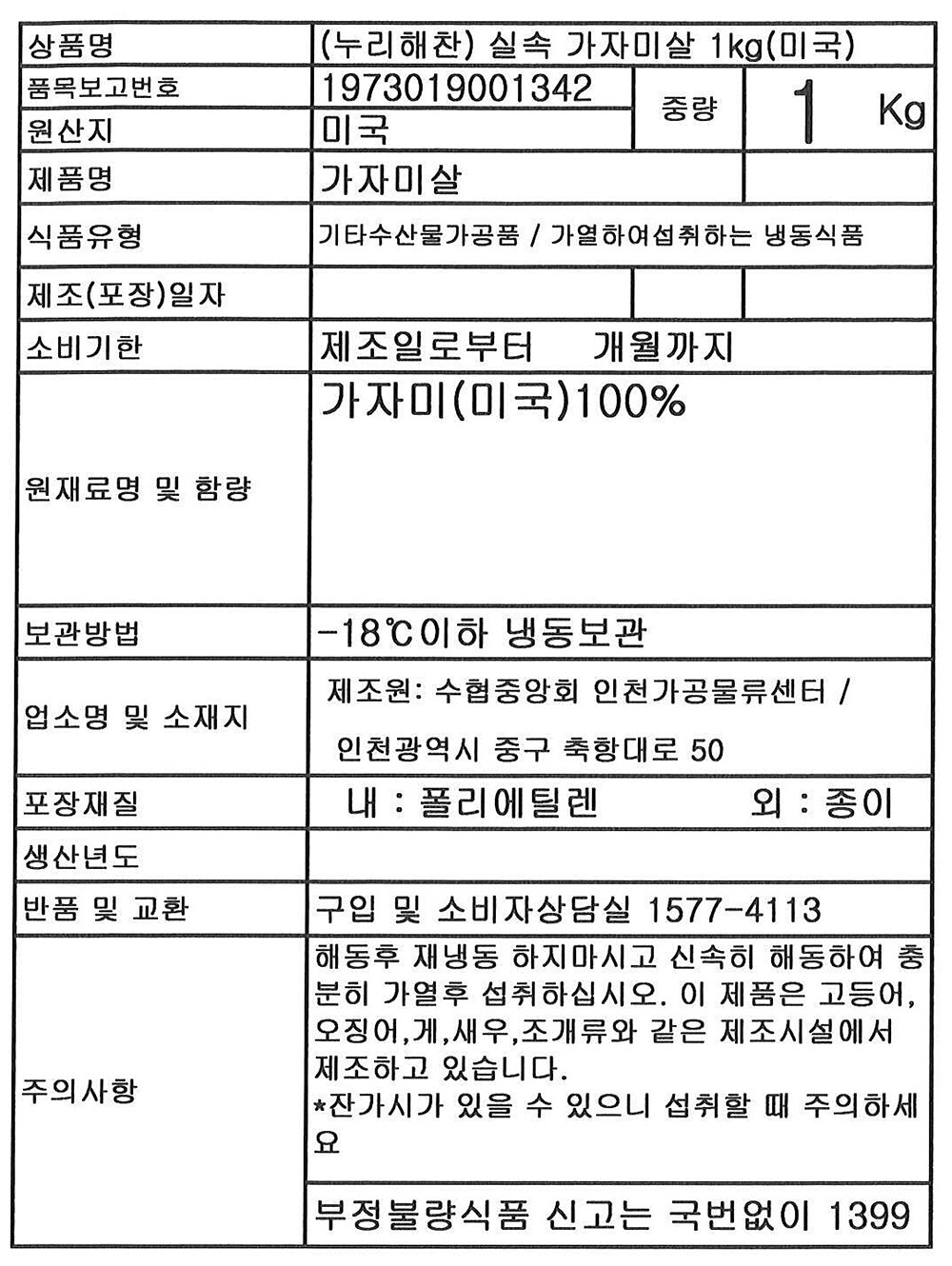 - 보관방법: 냉동보관