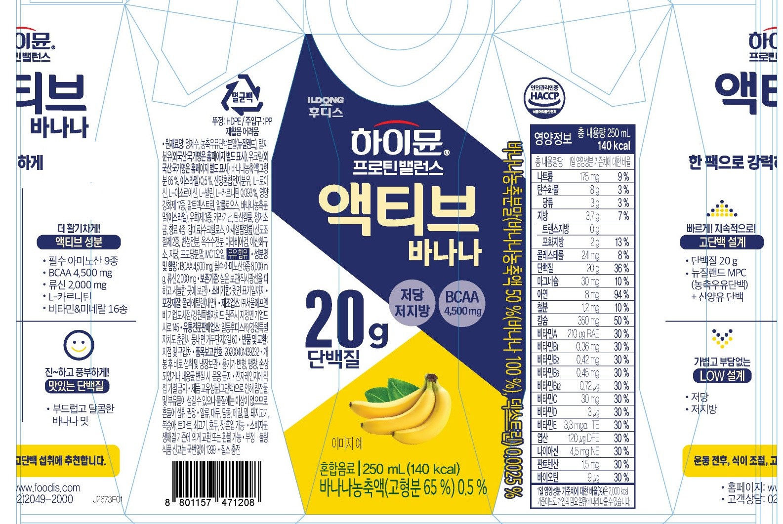 | 제품명 | 하이뮨 프로틴 밸런스 액티브 바나나 | 식품의 유형 | 컨텐츠 참조 |