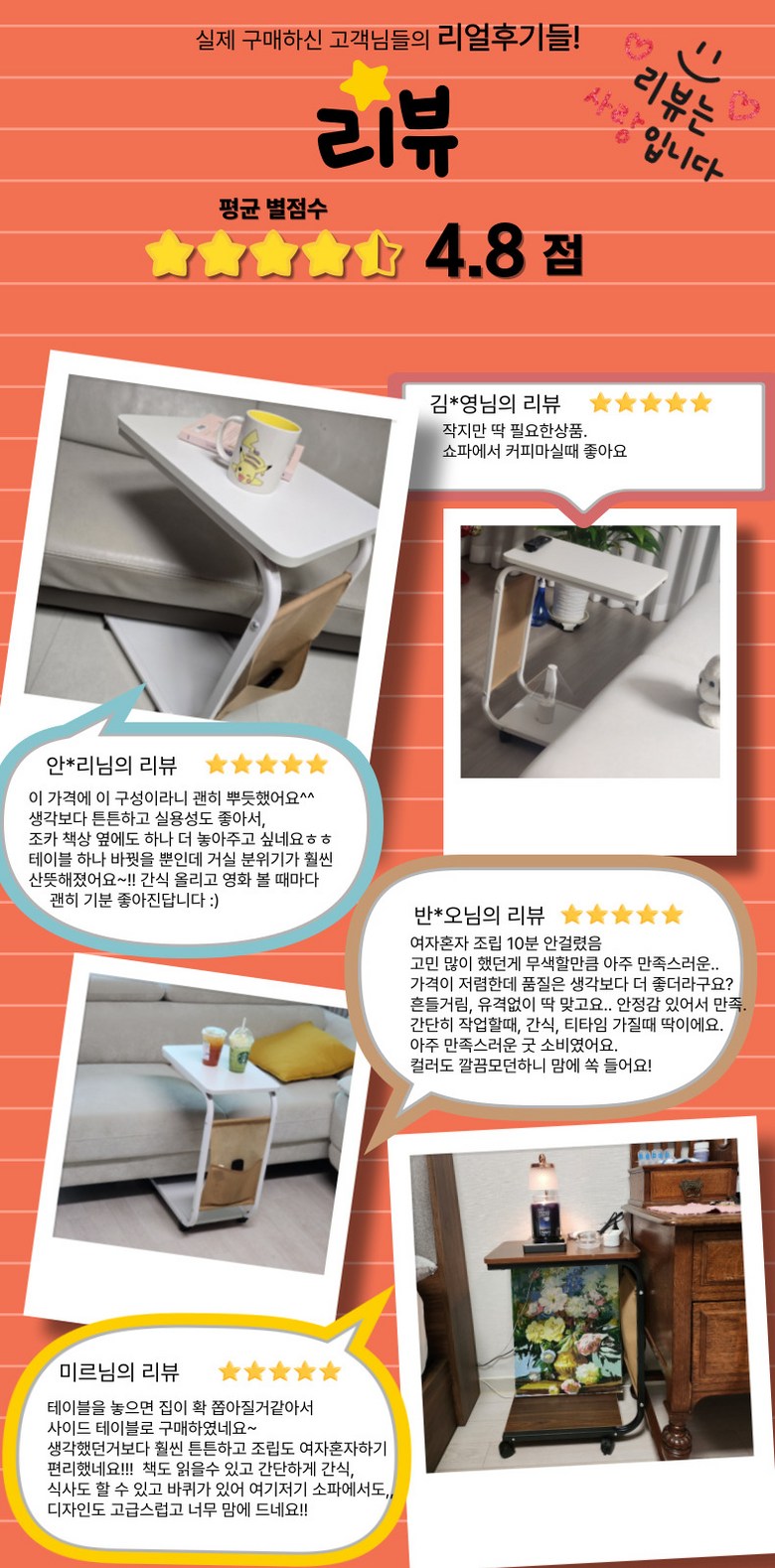 | 품명 및 모델명 | 하루 이동식 사이드 테이블 | 인증/허가 사항 | 상품 상세페이지 참조 |