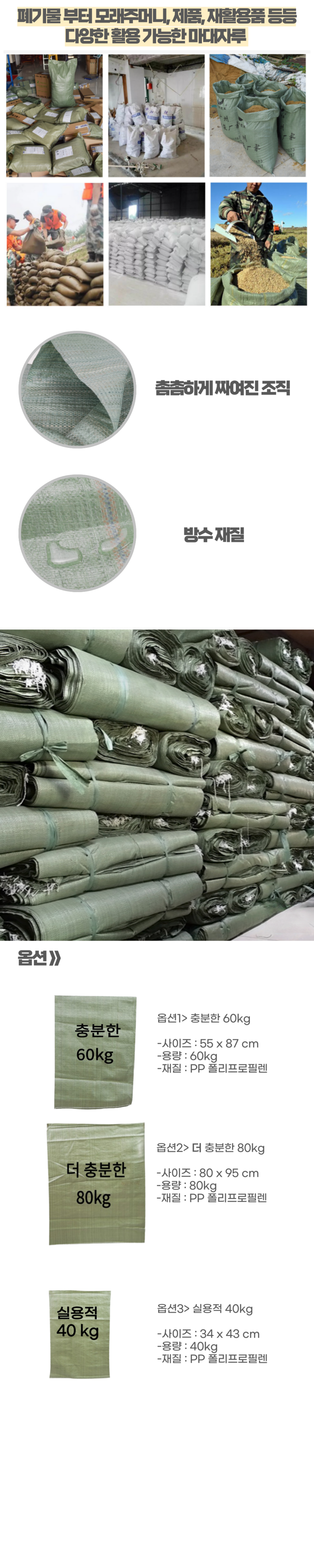 | 품명 및 모델명 | 다용도 마대 포대 | 인증/허가 사항 | 해당 사항 없음 |