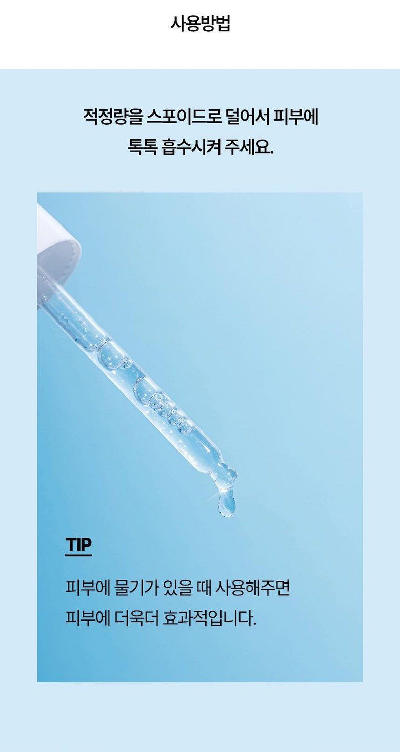 | 사용기한 또는 개봉 후 사용기간 | 제조연일로부터 30개월, 개봉후 12개월 | 사용방법 | 적정량을 스포이드로 덜어서 피부에톡톡흡수시켜 주세요. |