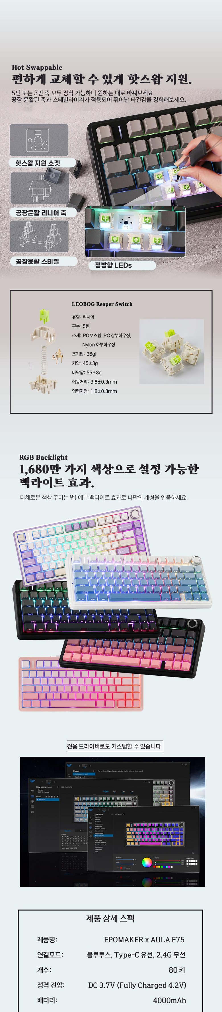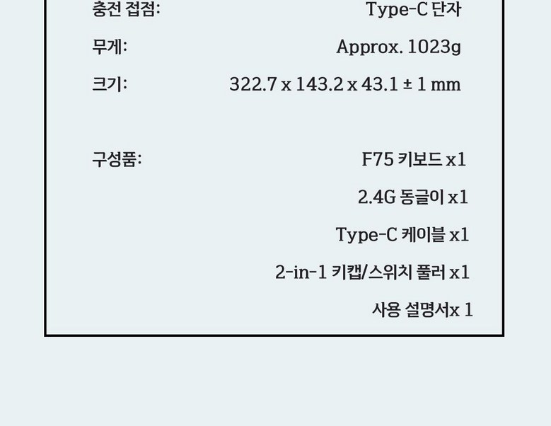 | 품명 및 모델명 | AULA F75 | KC 인증정보 | 상세페이지에서 참조 |