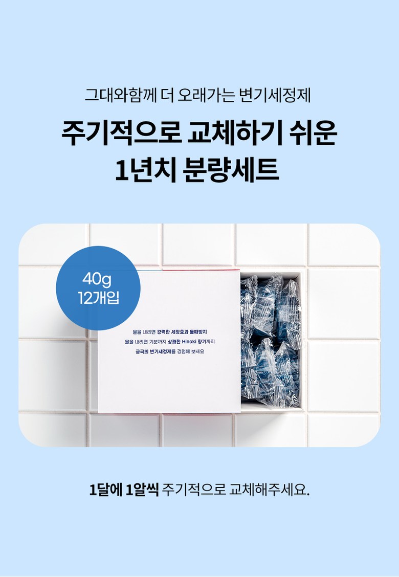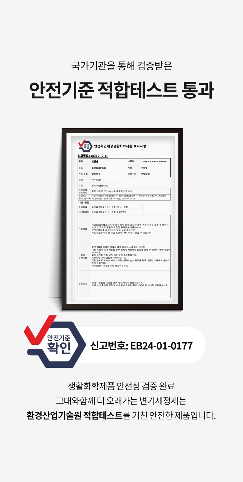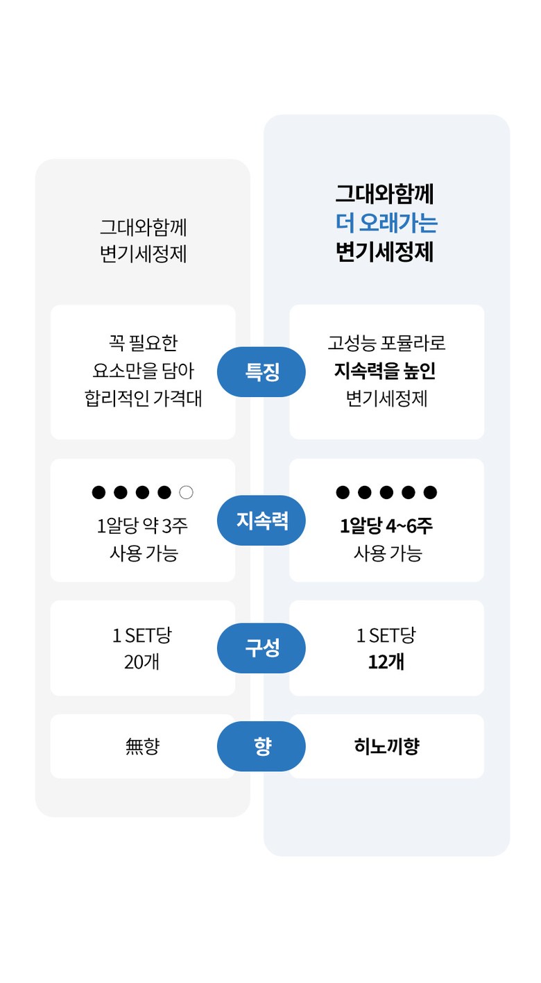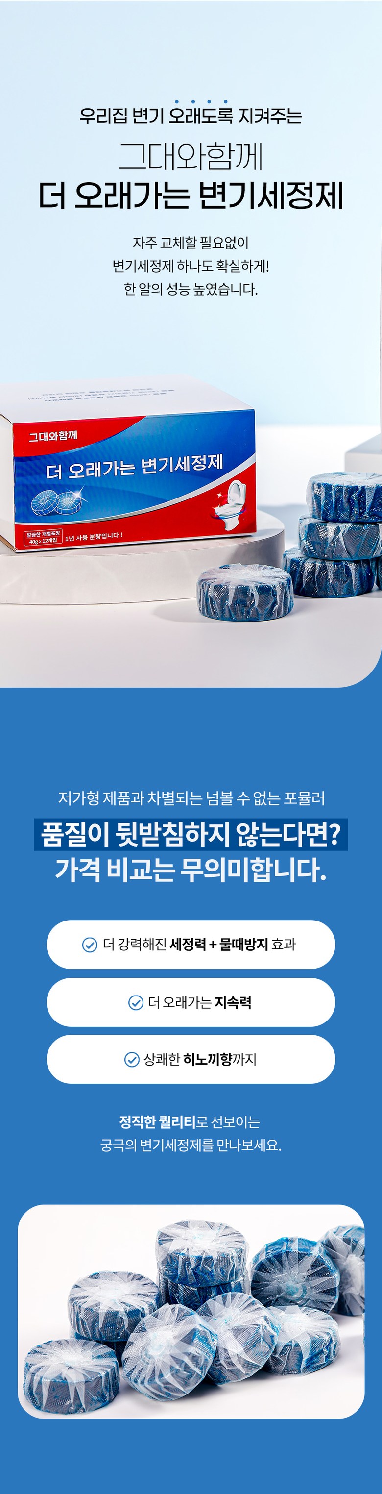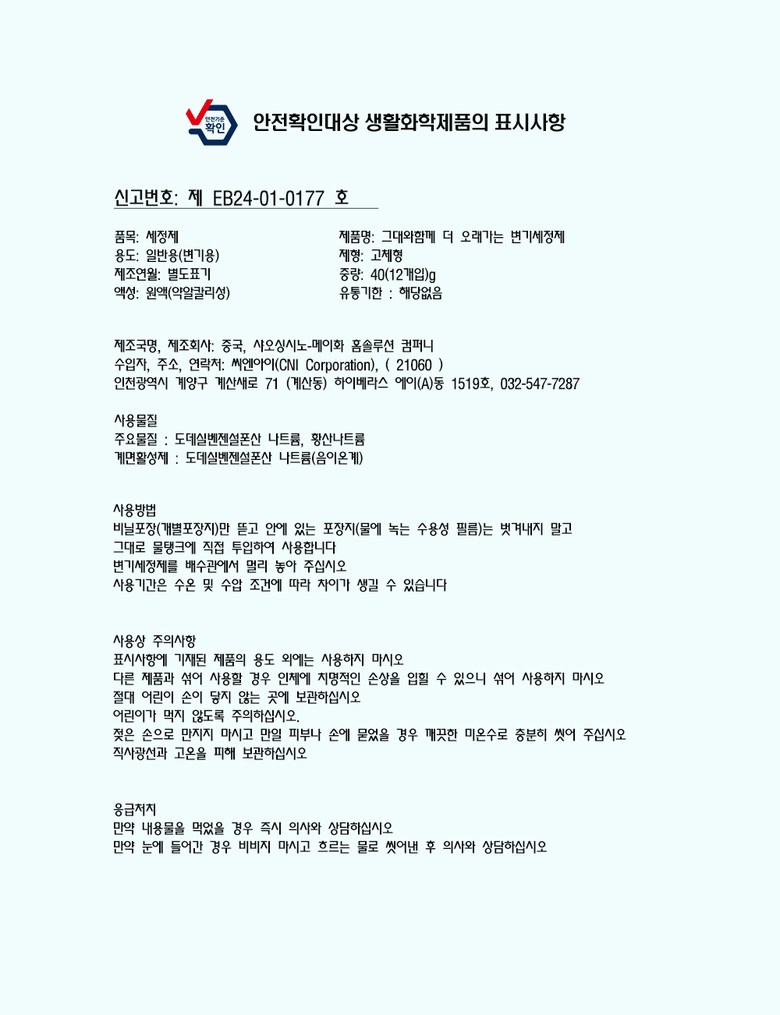 | 품목 및 제품명 | 세정제, 그대와함께 더 오래가는 변기세정제 | 용도(표백제의 경우 계열을 함께표시) 및 제형 | 일반용(변기용) |