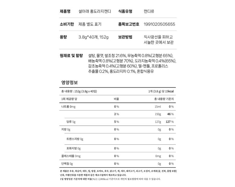 | 제조연월일, 소비기한 또는 품질유지기한 | 상품 상세페이지 참조 | 세부 품목군별 표시사항 | 상품 상세페이지 참조 |