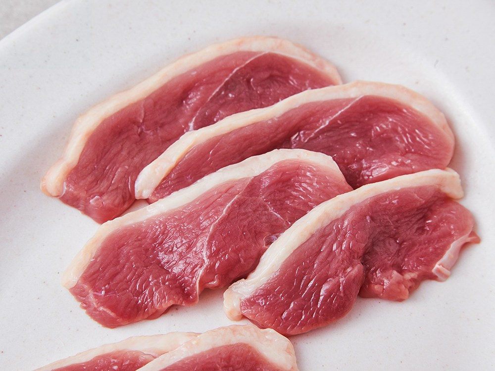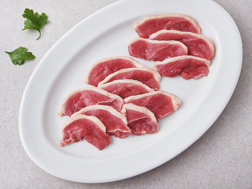 깔끔하게 손질된 오리 슬라이스예요. 얇은 두께로 슬라이스 되어 간편하게 요리하실 수 있지요. 한입 먹어보면, 껍질과 살코기가 조화롭게 어우러지며 고소한 맛을 뽐낸답니다. 노릇노릇 구워 드시기만 해도 맛있고요. 매콤한 양념에 버무려 주물럭을 만드셔도 별미랍니다.