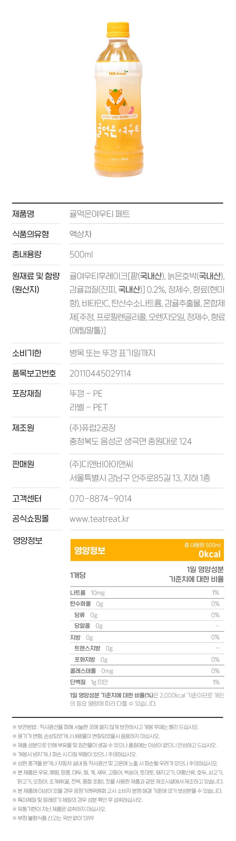 | 제품명 | 티트리트 귤먹은 여우티 | 식품의 유형 | 상품 상세페이지 참조 |