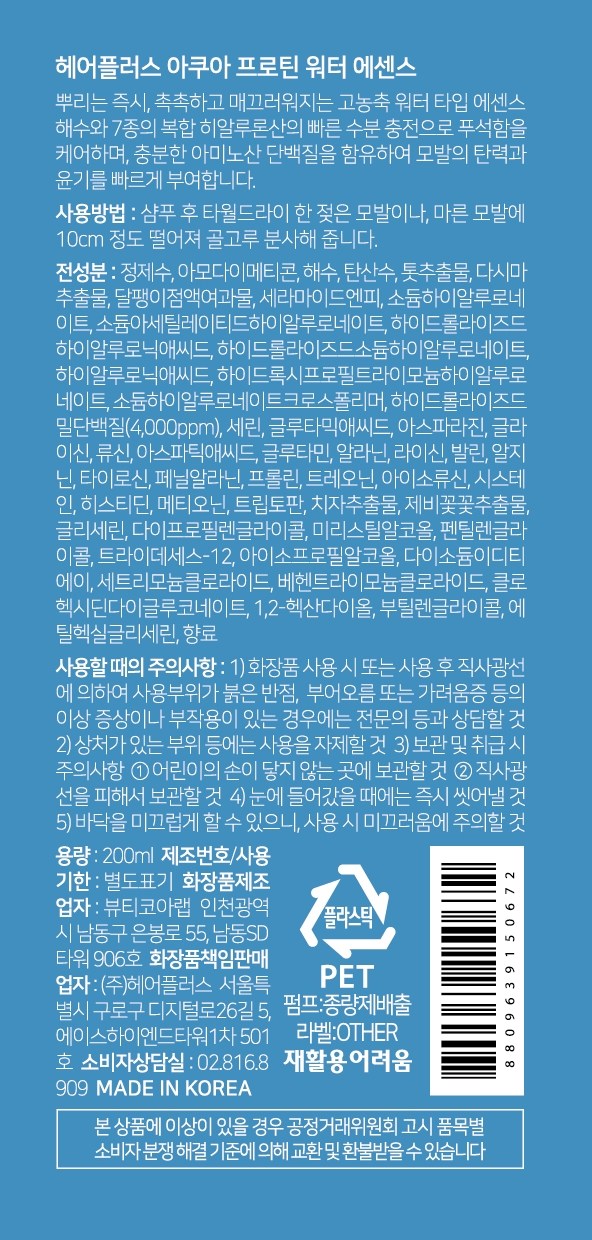| 용량(중량) | 200ml | 제품 주요 사양 | 모든 모발용 |