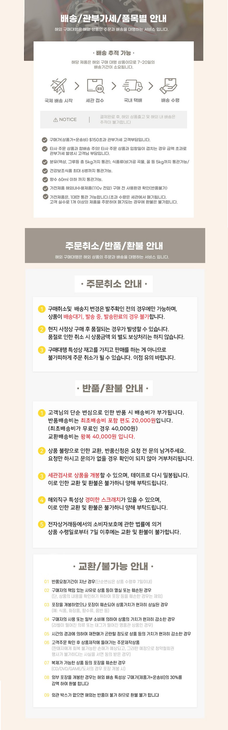| 배송방법 | 해외직구 | 배송비 | 무료배송 - 도서산간 지역 배송불가 |