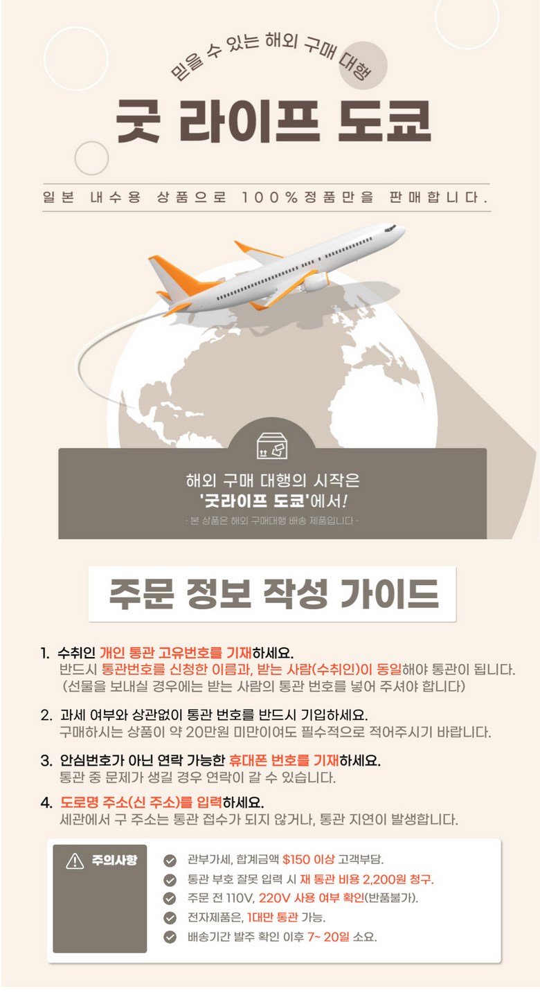 - 법규 개정에 따라 개인통관고유부호 검증 절차가 강화되었습니다.