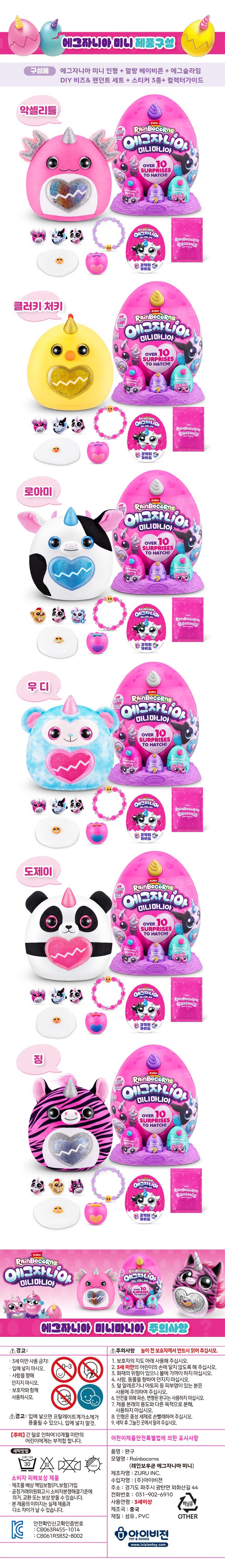 | 품명 및 모델명 | 아이비젼 레인보우콘 에그자니아 미니 마니아 인형 | KC 인증정보 | CB063R455-1014, CB061R3832-8002r |