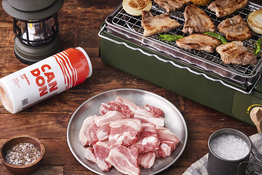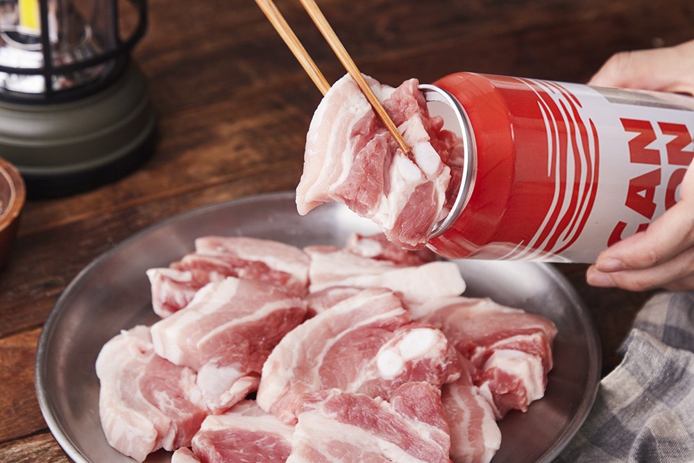 간편하게 챙기는 삼겹살 캔돈을 소개할게요. 단단한 캔에 담겨 있어, 야외활동을 떠날 때 간편하게 챙기기 좋은데요. 먹기 좋은 크기로 썰려 있어, 노릇하게 굽기만 하면 바로 먹을 수 있죠. 그전에, 캔에서 돼지고기를 꺼내는 재밌는 경험을 사진으로 남기는 것도 잊지 마세요.