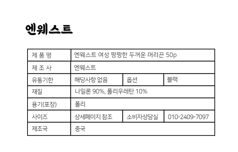 | 소비자상담 및 교환반품 문의 | 쿠팡고객센터 1577-7011 배송 및 환불/교환에 대한 문의는 마이쿠팡-고객센터 내 상담하기를 이용해주세요. | ||