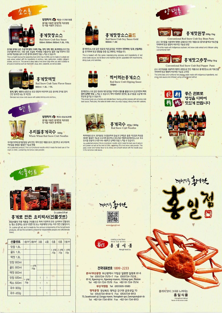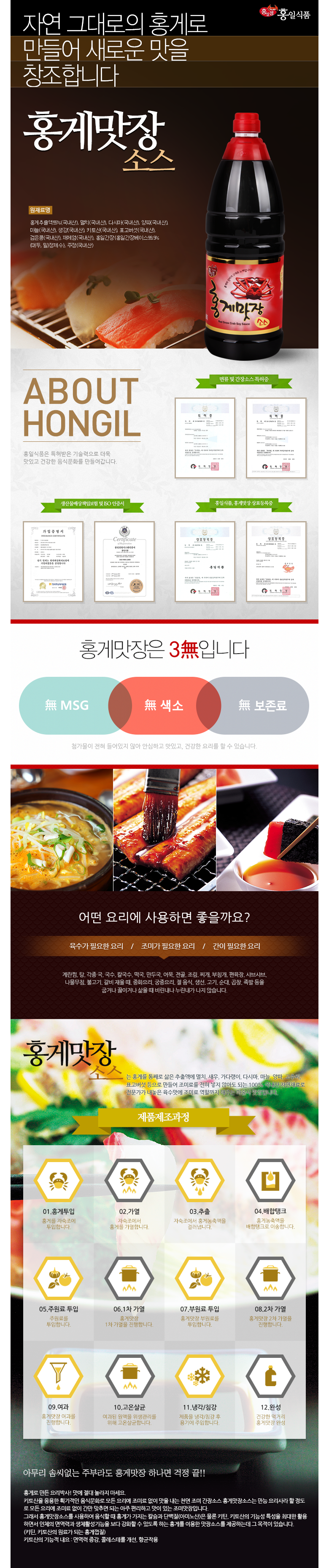 | 품목 또는 명칭 | 홍게맛장소스 | 포장단위별 내용물의 용량(중량),수량,크기 | 500ML |