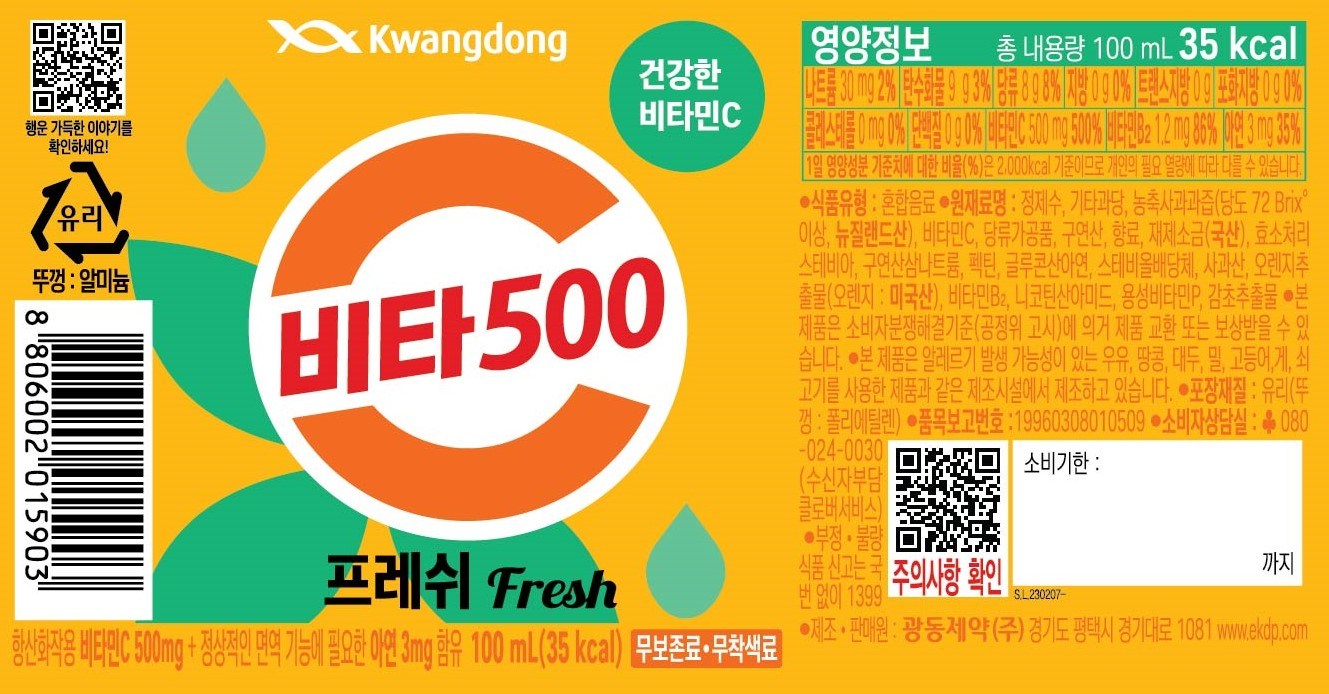 | 포장단위별 내용물의 용량(중량), 수량 | 100ml *10개 | 원재료명 및 함량 | 컨텐츠 참조 |