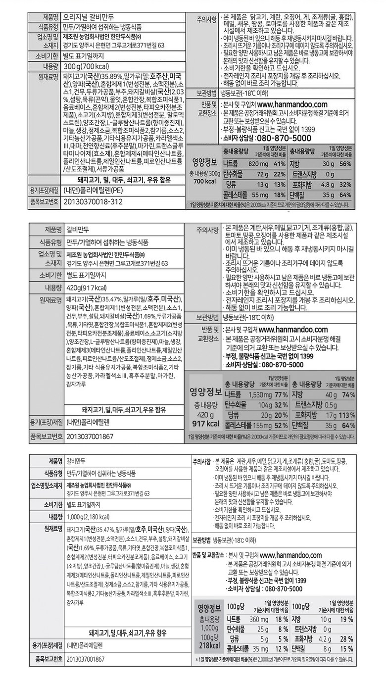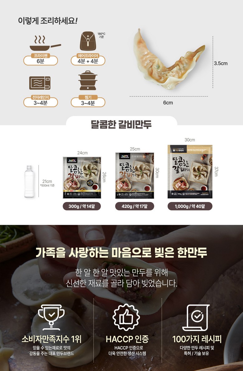 | 제품명 | 한만두 달콤한 갈비만두 | 식품의 유형 | 만두/가열하여 섭취하는 냉동식품 |