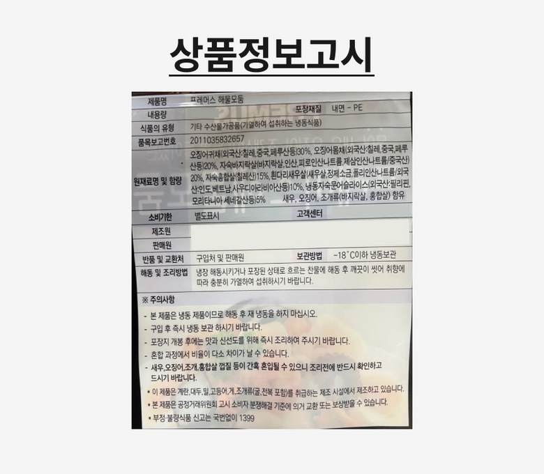 | 제조연월일, 소비기한 또는 품질유지기한 | 상품 상세페이지 참조 | 세부 품목군별 표시사항 | 상품 상세페이지 참조 |