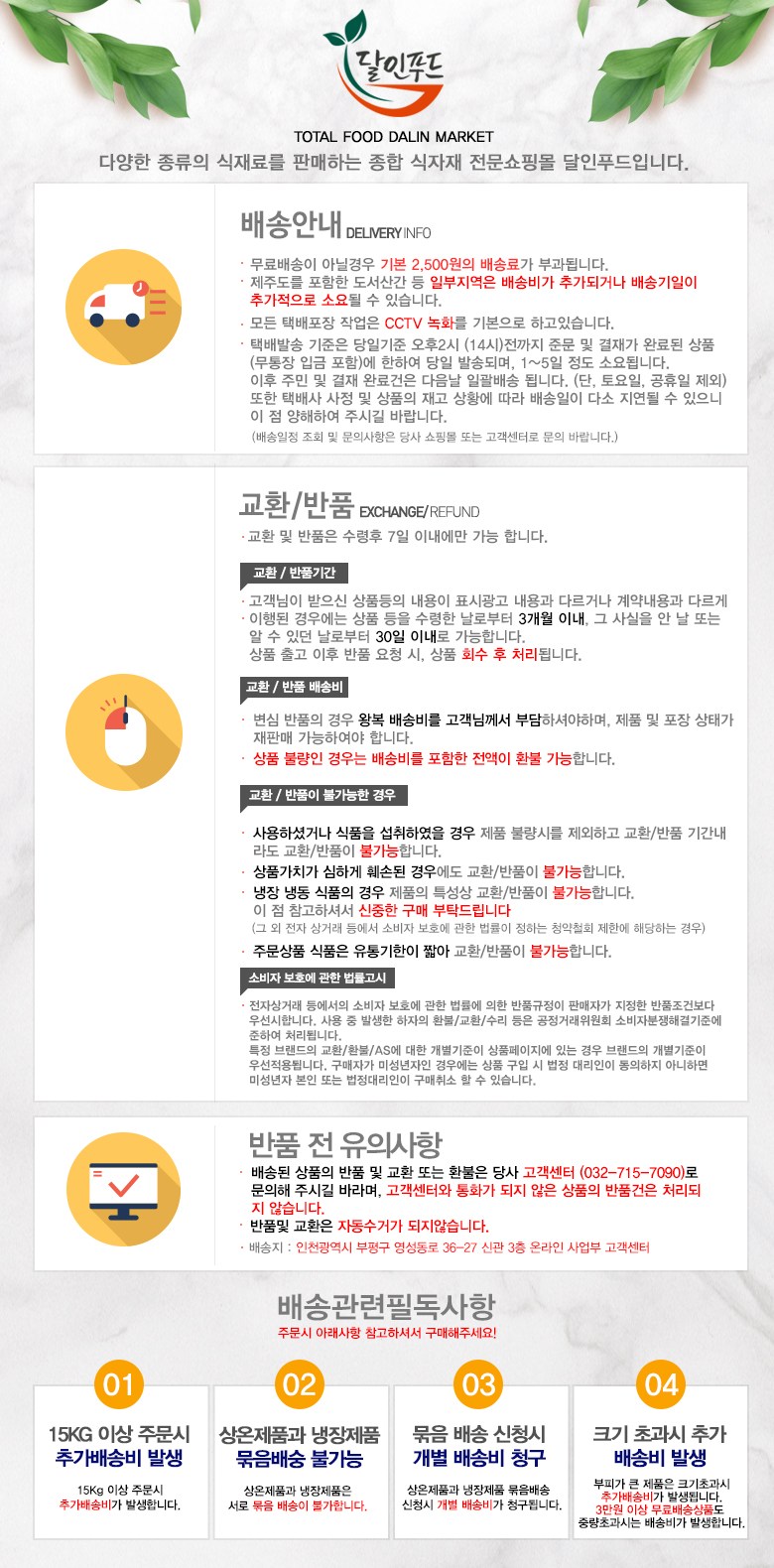- ㆍ모니터 해상도의 차이로 인해 색상이나 이미지가 실제와 달라, 고객이 단순 변심으로 교환/반품을 무료로 요청하는 경우